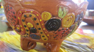 The Pottery workshops run by Pam have been well received with community members keen to improve their sculpting skills and try new techniques and Pam has supported Scotdesco artists to teach pottery skills to younger people and local school groups. As a result of these workshops Glenette Miller from Scotdesco sold all entered pieces of work in the recent Our Mob exhibition. |